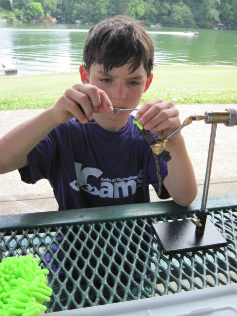This past week, our charter volunteered to teach fly tying and fly rod casting to about 20 kids in the summer day camp program at Wing Deer Park. A special thanks to Connie Deegan and the entire team at the Johnson City Parks and Recreation Department for facilitating this opportunity and providing some great photos!